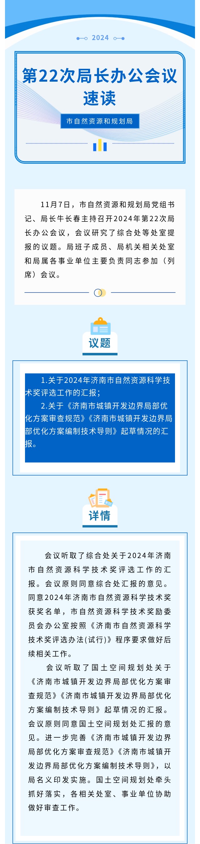 【图解】市自然资源和规划局2024年第22次局长办公会议速读