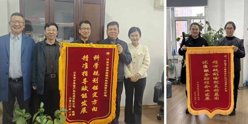 近日,第三分局获赠山东黄金集团产业发展有限公司“科学规划锚定方向,精准指导赋能发展”和中达安股份有限公司“精心规划绘就美好蓝图,优质服务助推企业发展”的锦旗。两面锦旗不仅是企业对分局工作的高度认可,更是对济南市持续优化营商环境、助力企业高质量发展的生动注脚。