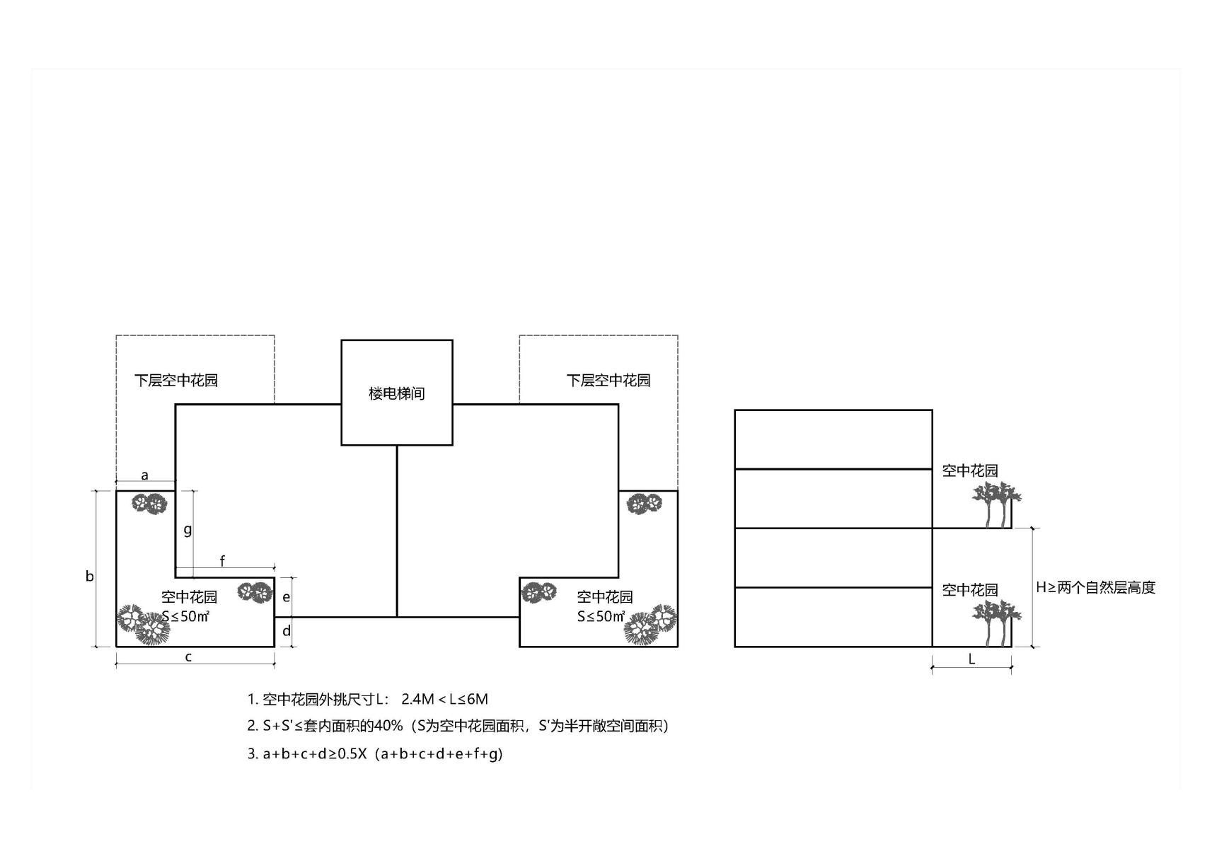 2) S+S'≤套内面积的40%(S为空中花园面积,S'为半开敞空间面积)