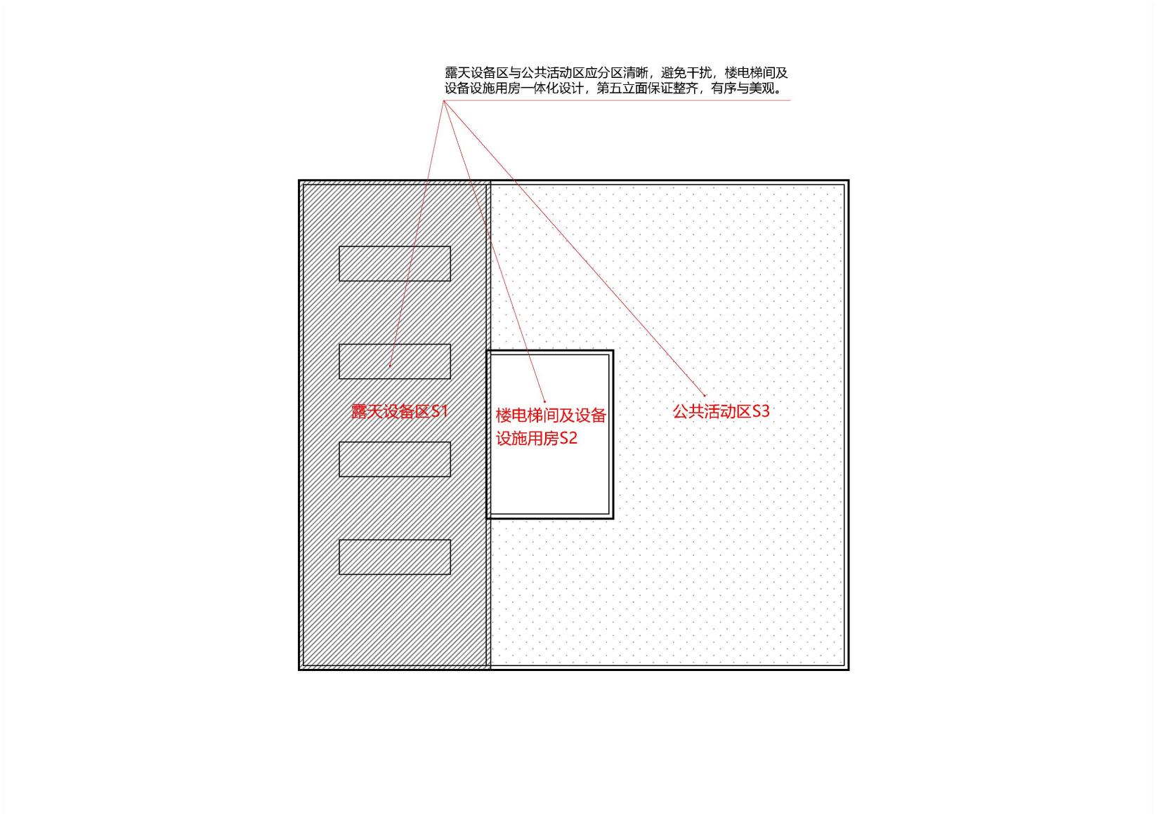 非住宅类建筑屋面:当S3≥(S1+S2+S3) ×60%且S2≤(S1+S2+S3) ×25%时,一体化设计的楼梯间及设备设施用房(S2)不计容。