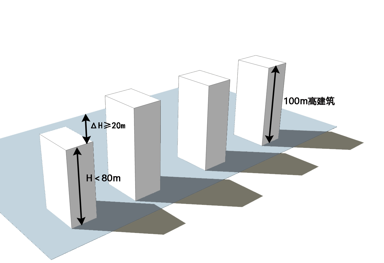 建筑高度:50<H≤100米,玻璃幕墙占外立面比例不宜大于70%;