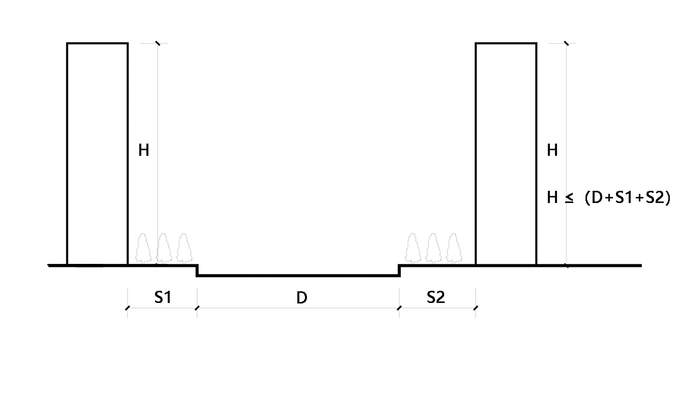 沿道路两侧的居住类建筑,高度不宜超过道路红线宽度
