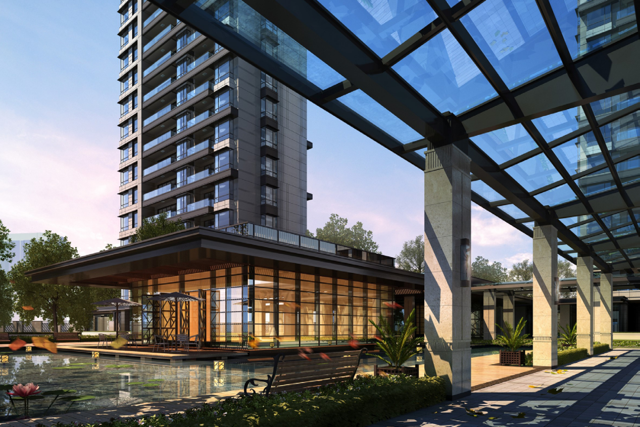 高层居住类建筑的顶部鼓励做适当的变化处理,采用平坡结合的方式,增加一些灵活有序的造型变化。设计中宜通过退台和收分的方式,使高层居住类建筑呈现出丰富多变的顶部造型。