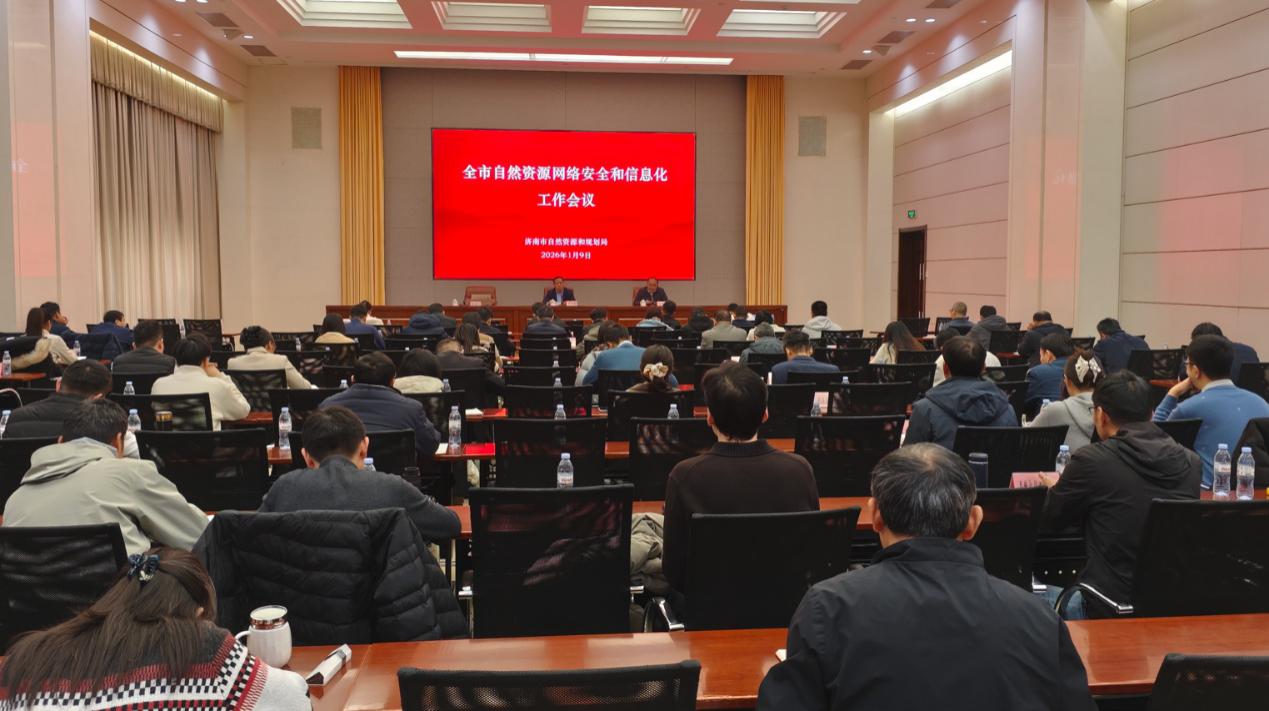 2026年1月9日,济南市自然资源和规划局组织召开全市自然资源网络安全和信息化工作会议。会议深入学习贯彻党的二十届四中全会精神,全面落实上级关于网络安全和信息化工作的决策部署及“数智济南”建设要求,系统总结前期工作,分析当前形势,安排部署当前及“十五五”时期网络安全和信息化重点任务;同时邀请省委网信办等专家作专题辅导。市局一级调研员许多兵同志出席会议并讲话。